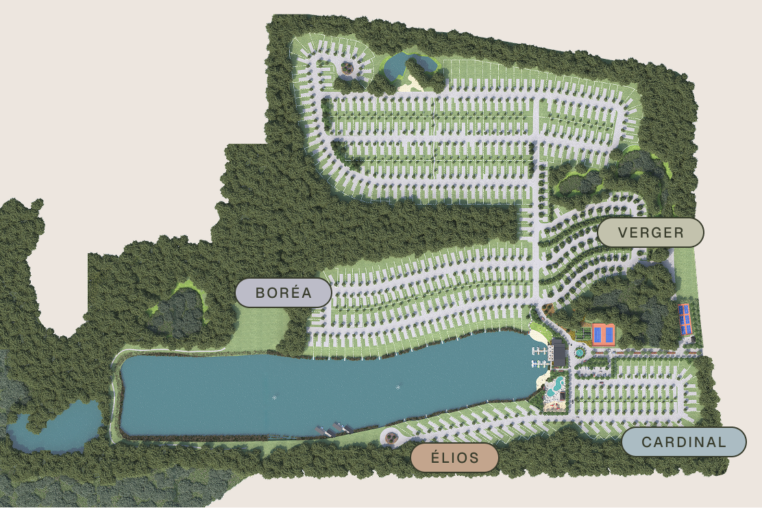 En plus des infrastructures de base, chaque propriétaire bénéficie de l’accès à l’ensemble des services et installations du domaine : pavillon principal, clubhouse, espaces récréatifs, sentiers et activités sur le lac.