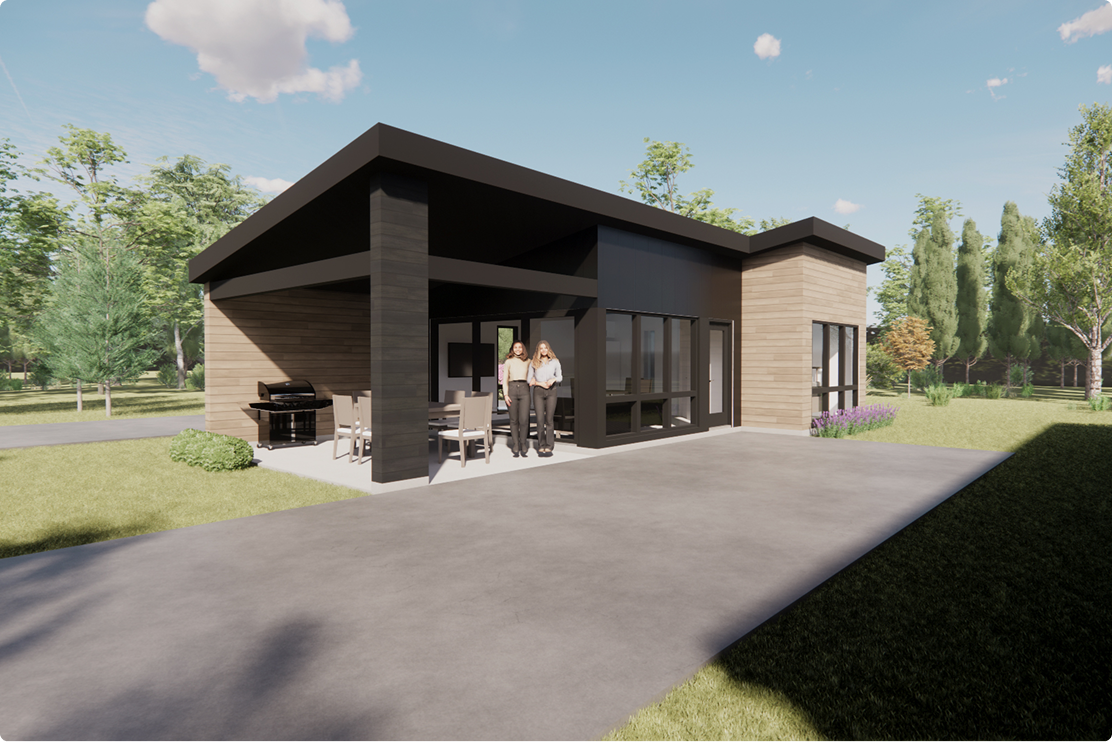 style : choix de pavés unis, ajout d’un chalet d’appoint, d’un quai (si votre terrain est en bordure du lac), d’un mur acoustique ou d’intimité, etc.